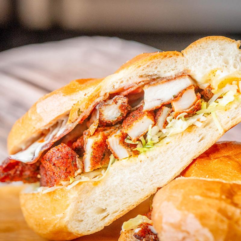 Our most popular sandwiches are all served on braided sub rolls. This is a very hearty tray. 2 Italian, 1 chicken cutlet caprese, 1 buffalo chicken with bacon, and 1 Nicoletta sub (cutlets, mozzarella + pesto).